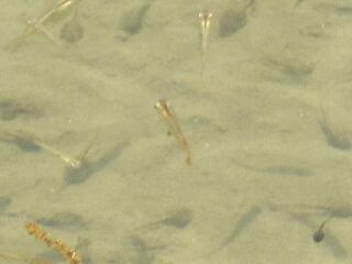 冬の間姿が見えず、1週間前に突然池に復活したメダカの群れが、オタマジャクシの上をすいすい泳いでいます。水温が上がり動きも活発になってきたようです。
