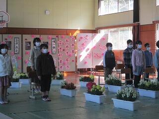 今日、第127回港小学校卒業式が行われました。6年生4名が無事卒業式を迎えることができました。卒業生も在校生も、とても真剣に式にのぞみ、良い式となりました。出席いただいた保護者の皆様、祝詞や卒業生へのお祝いの品を届けていただいた皆様ありがとうございました。