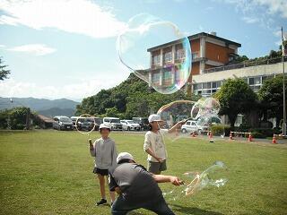 5月15日(水)の放課後子ども教室で、シャボン玉をして遊びました。社会教育課から講師の先生にお出でいただきました。割れにくいシャボン玉液を研究して準備していただきました!本当に、大きくて割れにくいシャボン玉がいくつもできて、大喜びの子どもたちでした。社会教育課のみなさん、放課後子ども教室の安全管理員のみなさん、いつもありがとうございます。