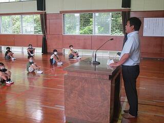 12日(金)11時45分より離任式を行いました。全校児童を代表して、6年の松本さんが「お礼の言葉」を述べ、5年の歌津君、市川君が花束とお礼の手紙を贈呈しました。教頭先生の理科の授業が、とても面白くて楽しかったようです。最後はみんなで間を開けながらもアーチでお見送りしました。