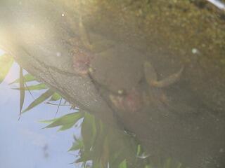 池には、カニはまだぞろぞろとはいませんでしたが、1匹だけ大きなカニが出てきていました。