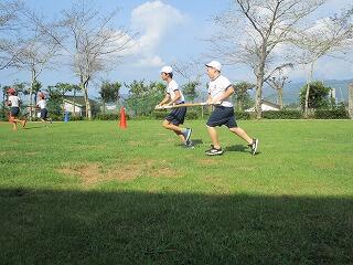 今日は親子団技の練習がありました。上学年は保護者の方と一緒に「台風の目」を行います。下学年は「大玉転がし」です。