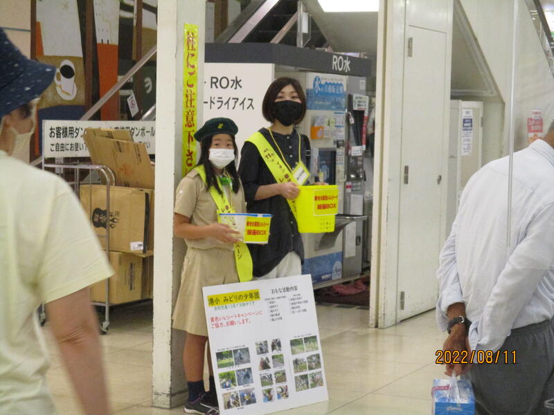 現在、コロナ禍ということで2名しかキャンペーン活動には参加できませんでしたが、みどりの少年団を代表して3年の中西羽桜さんと保護者の千春さんに参加していただきました。