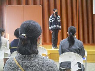いつも爽やかな挨拶と笑顔を心掛け、陸上に励み、各行事に下級生の手本となって取り組む姿が評価されたものです。