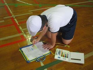 上学年は、体育館でなわとびの練習をしました。個人のめあてを決めて、できた記録を塗っていきます。