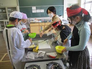 5、6年生がお楽しみ会の一環でワッフル作りをしています。