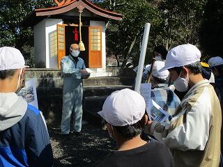 今日、5・6年生は総合的な学習の時間「地域のためにできること」で学校下にある弁天様の清掃活動をしました。本年度の総合的な学習は「地域にある神社」をテーマに調べて発表してきました。そうした感謝を込めて、清掃活動を行いました。