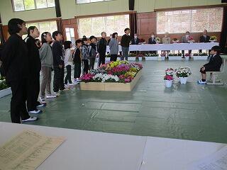 新入生1名が入学しました。2年生から6年生までの子どもたち、地域の方、保護者の方、先生たち、たくさんの花々に囲まれたすてきな入学式になりました。