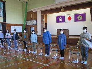 今日は第1回目の卒業式練習が行われました。教務主任の緒方先生から卒業式を迎える心構えについてのお話があり、式の一連の流れを確認しました。