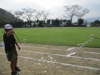 放課後子ども教室で、安全管理員さんとしゃぼんだま遊びをしていました。