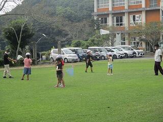 1・2年生は、今生活科でバッタ取りに夢中です。今日の昼休みもバッタ取りに必死でしたが、S君の網にトンボが飛び込みました。放課後子ども教室では、今度はみんなトンボ取りに夢中になっていました。
