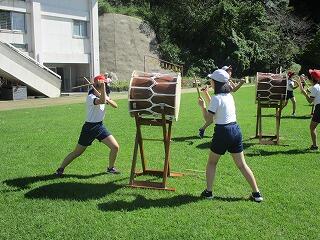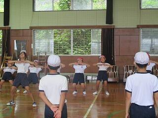 運動会全体練習の3回目も行われました。今日はようやくの晴れ。運動場でばんば踊りの練習や、開閉開式の練習を行いました。日陰はサラッとした風が吹いて涼しいのですが、陽向の太陽の光はまだまだ暑さを感じます。