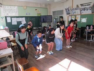 国語の時間に、1、2年生がリズムに乗って学習発表会の練習をしていました。
