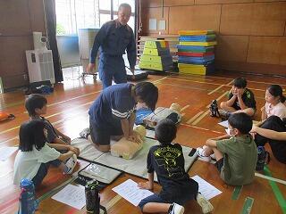 5月30日(木)、延岡消防署から3名の方を講師にお招きし、心肺蘇生法実技研修会を行いました。研修会には、職員、『放課後子ども教室』でお世話になっている地域の安全管理員さん、子どもたちが参加しました。救命のリレーの大切さを学び、一人一人が真剣に心肺蘇生法の実技を行いました。子どもたちは初めての受講でしたが、しっかり話を聞いて講師の先生に優しく教わりながら、学年に応じて実技に取り組むことができていました。延岡消防署の講師の皆様、ありがとうございました。いざという時に行動できるように心構えをもちたいと思います。