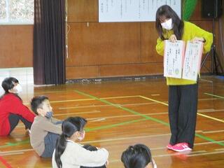 今日は3・4年生は外国語サポーター岩切先生による本年度最後の外国語活動の授業でした。「小学校、中学校、卒業式」などの単語を使って英会話を行いました。岩切先生には、本格的な英会話を指導していただきありがとうございました。
