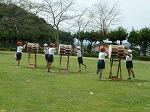 1校時の合同練習では、「ラジオ体操」「徒競走」「玉入れ」「全員リレー」「綱引き」の練習をしました。