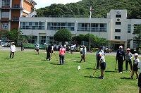 最初は、うまくスティックに当てることができなかった低学年の児童も、地域の方々に「こつ」を教えていただき、次第にうまくなっていきました。