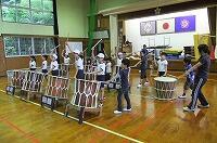 今は、基本練習。リズムに合わせて、声に出して、体を使って、太鼓を打ちます。