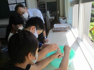 相互参観授業では、4年生の理科「空気と水」、6年生の社会科「室町時代~新しい文化が生まれる」の授業が行われました。理科では、空気や水を押し縮める実験を行いました。社会では、茶の湯や生け花の写真を見て意見を出し合いました。