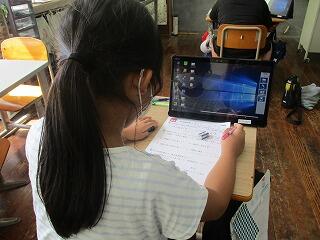 今日は3・4年生の算数科の相互参観授業がありました。3年生は「円と球」、4年生は「計算の順序」のまとめの授業です。両学年ともタブレットを使いながら、それぞれの状況に応じた問題に取り組んでいました。