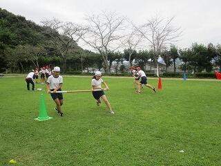 今日の朝は曇り空。閉会式練習前に雨が降り出しましたが、それ以外は予定のプログラムを終えることができました。始めに、「今日やってみて、応援・競技・係活動で出てきた問題点を自分自身で考え、どう本番までに修正していくかが予行練習をする意味ですよ。」と話しました。