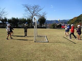昼休み、6年生が運動場でバレーボールを始めました。コートはなくてもサッカーゴールが即席のネットになっていました。ゴールはパイプ製で軽いので、倒れても危なくはありません。