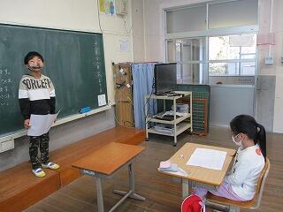 明日が終業式。今日で2学期の教科内容がほぼ終わります。1・2年生は教室で国語の時間に書いた作文の発表を行いました。