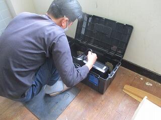 3階図工準備室にある地殻変動計測器の電源装置を取り替えるためです。アンテナで人工衛星からの電波を受信して、数㎜の精度で地殻変動を観測しているそうです。