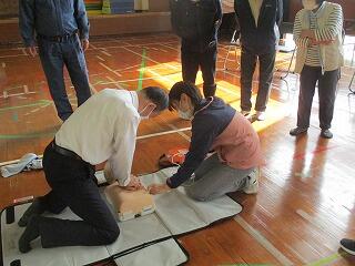 胸骨圧迫の仕方や、AEDの操作の仕方を確認しました。毎年のように講習を受けていても、いざ本当に使う場面になると頭が真っ白になりそうです。そうならないようにしっかり講習を受けなければと思いました。