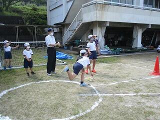 6月1日の今日は、1校時に全校体育でソフトボール投げを行いました。今日も爽やかな天気です。