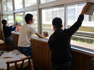 下の写真はそうじ時間の写真ではありません。5・6年生は家庭科「クリーン大作戦」で、校内の汚れている箇所を調べました。今日は、「知ってるかなそうじの仕方」という学習で、ランチルームの汚れているところをきれいにしていました。何を使えば汚れがよく取れるか等を工夫していました。