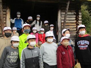 お弁当をみんなで運動場で食べて、裏山の山小屋に登りました。6年生にとっては最後の山小屋です。みんなで延岡市の町に向かってヤッホーと大声を出しました。