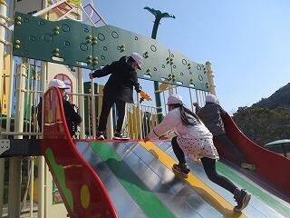 到着してまず遊具で遊びました。大きな遊具を使っての鬼ごっこなどを楽しみました。おやつタイムの後は、それぞれ自由にグランドで遊びました。ボール遊びをする人や、中にはジョギングコースに沿ってランニングを楽しむ人もいました。エネルギーをたっぷり発散できたようです。太陽の光が射して風もさほど強くなく遠足にはぴったりの一日でした。お弁当は金曜日に食べたので、今日は学校に戻って給食を食べました。