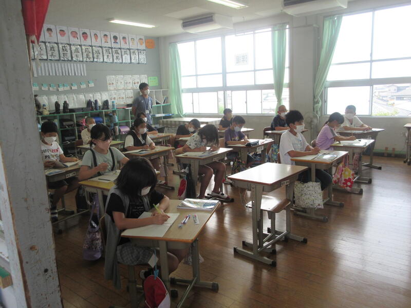 終業式では、校長先生より夏休みに向けて目標を立てて、いろいろなことに挑戦してほしいという話がありました。また、水の事故、交通事故、熱中症・コロナ対策、早寝・早起き・朝ご飯などの生活リズムについても話がありました。さらに夏休みの安全面や保健面、学習面について3名の先生からも話がありました。