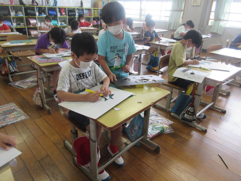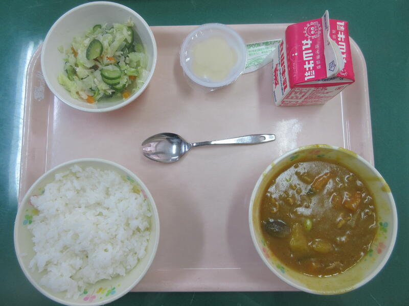 1学期も残すところ、あと3日となりました。1学期の学習内容もほぼ終わり、まとめをしたり、作品の整理をしたりしています。給食も明日までとなり、本日は子どもたちの好きな「なつやさいカレー」「ひゅうがなつサラダ」「とうにゅうプリン」でした。いつもより早く食べ終わる子どもが多かったです。夏休みはおうちでの食事になりますが、バランスのよい食事をとり、暑い夏を乗り切っていきましょう。