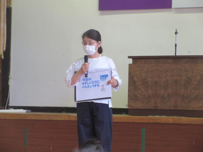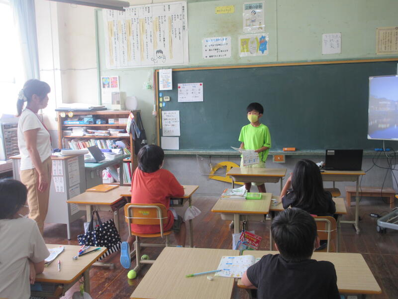 終業式では、校長先生より夏休みに向けて目標を立てて、いろいろなことに挑戦してほしいという話がありました。また、水の事故、交通事故、熱中症・コロナ対策、早寝・早起き・朝ご飯などの生活リズムについても話がありました。さらに夏休みの安全面や保健面、学習面について3名の先生からも話がありました。