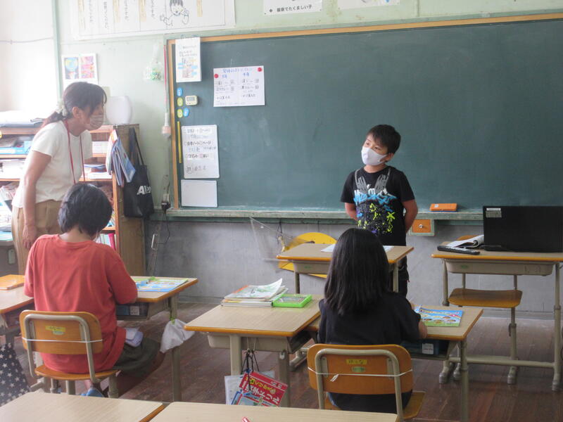 1学期最後の外国語サポーター(安藤先生)とALT(アナ先生)の訪問がありました。3・4年生の外国語活動では、友達に自分の好きなものときらいなものを紹介したり、尋ねたりしました。聞き取って理解できたときは、「OK」や「Yes」と言って互いに反応し合っていました。5・6年生の外国語科でも、アナ先生に「どんなおやつが好きですか」などと英語で尋ねたりしてコミュニケーションをとっていました。