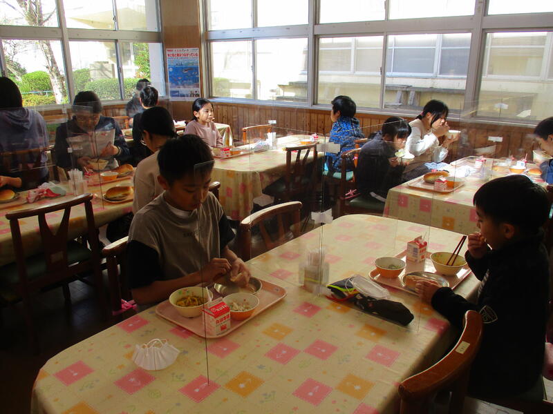 本日15日ぶりに全児童がそろい、2学期最後の給食をいっしょに食べました。