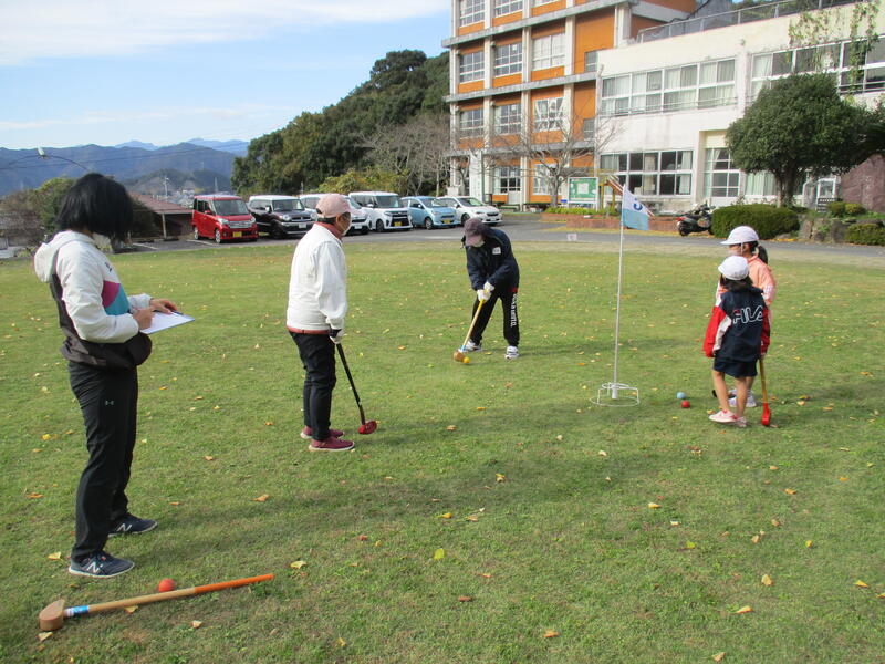 本年も子どもたちと地域の方々との「ふれあいグラウンドゴルフ大会」を開催しました。