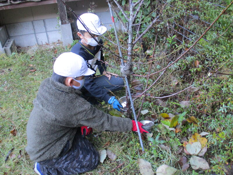 この冬から春にかけて梅の木に栄養が行き渡るように、肥料をまきました。