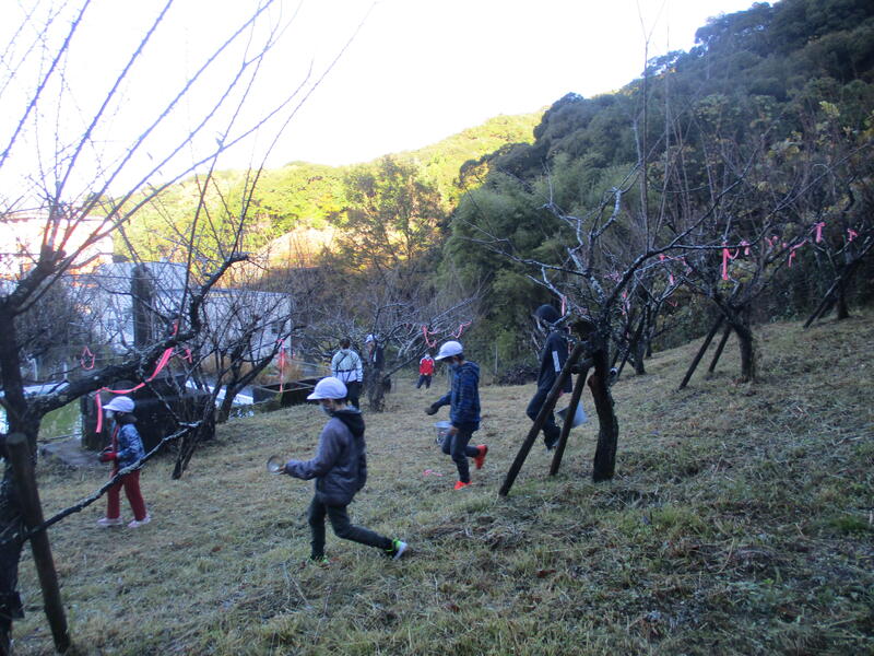学校林にある梅の木も寒さに耐えながら暖かい春を待つことになります。