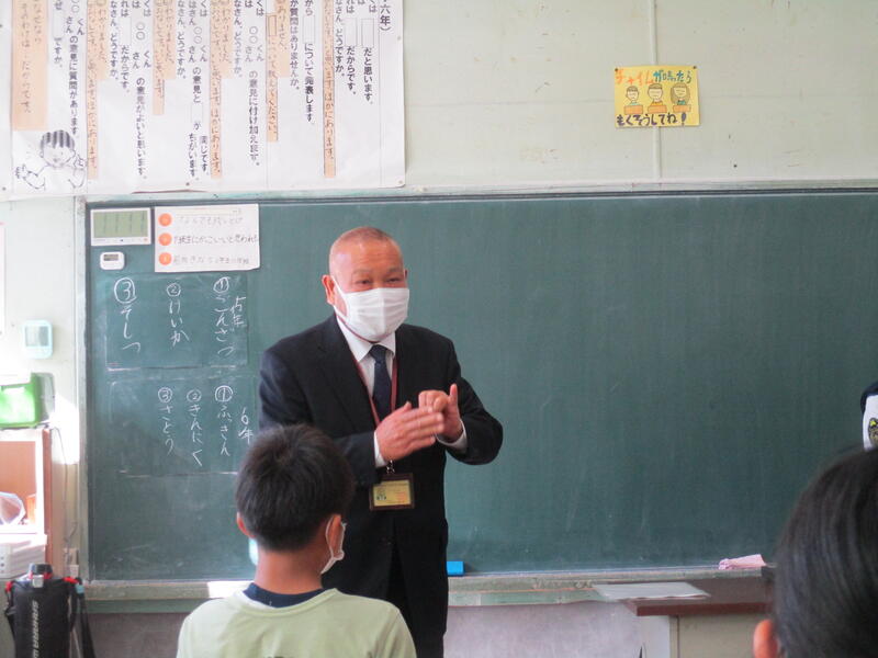 まず、校長先生より、食べるありがたさについての話がありました。日本では戦時中食料が少なく、家族総出で田植えなどをして食料の確保をしたり、世界には現在でも食糧難で食べることができない生活を送っていたりする国があることを教えてもらいました。あたりまえに食べることができることに感謝しながら食事をいただきたいと改めて感じました。