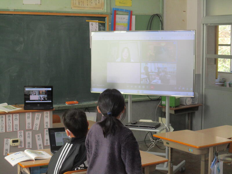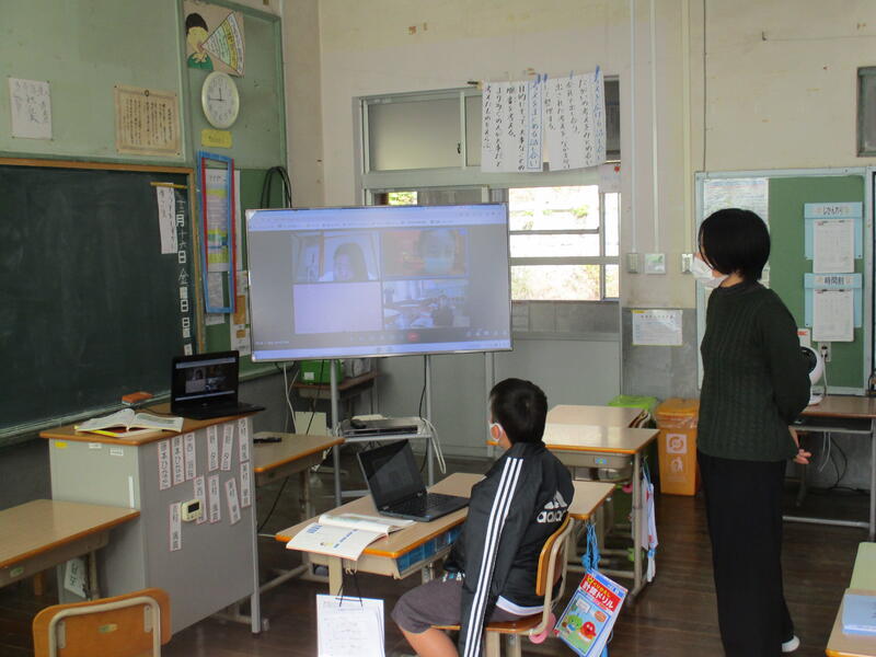 3年生では、学校にいる児童と欠席している児童をオンラインでつないで授業を行いました。
