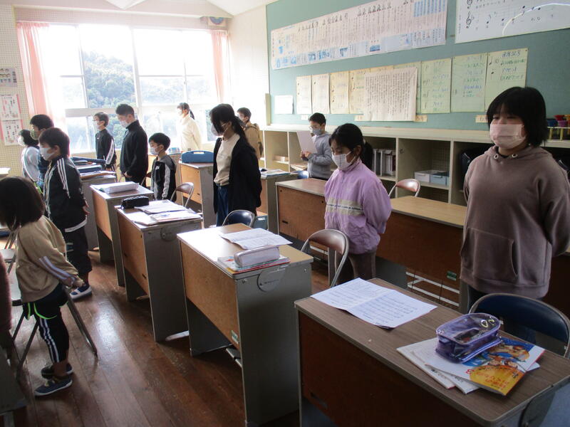 今日は、音楽の授業で全学年で音合わせをしました。「たいせつなもの」という歌を高音と低音のパートに分かれて歌います。これから1ヶ月間、みんなで練習を重ね、本番では心をこめて卒業生を送り出したいと思います。