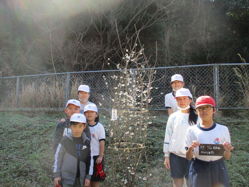2月に入り、学校園の梅木も花が満開に咲き、5月の収穫に向けて成長していっています。