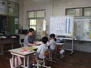 3・4年生の国語の時間です。漢字の音読み、訓読みについて、学び合いながら学習しました。