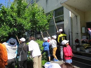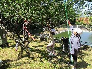 港小学校には、梅林があります。明日は、梅ちぎりの日です。地域の方も来られます。今日は、前日準備ということで、かご、秤、ブルーシートなどを準備しました。ちぎった梅は販売もするので、長机やビニール袋なども準備しました。例年に比べて梅の実は少なそうですが、子どもたちは「あした、楽しみです!」と張り切っています。