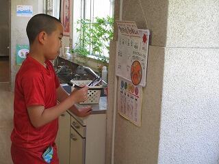 ↓ 熱中症マークを掲示をしています。保健室の先生が熱中症温度計で計測・確認をしています。