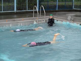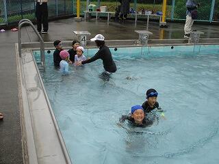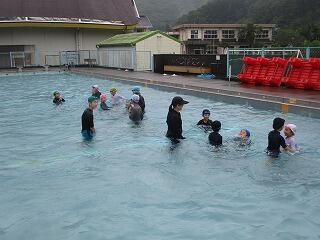 小雨の降る中のプール開きになりましたが、子どもたちは、楽しく水遊びをしたり、一生懸命バタ足やクロールの練習をしたりと、充実した時間になりました。