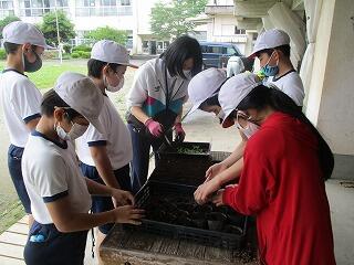 みんなポットの土に穴を開け、優しく植え替えを行っていました。
